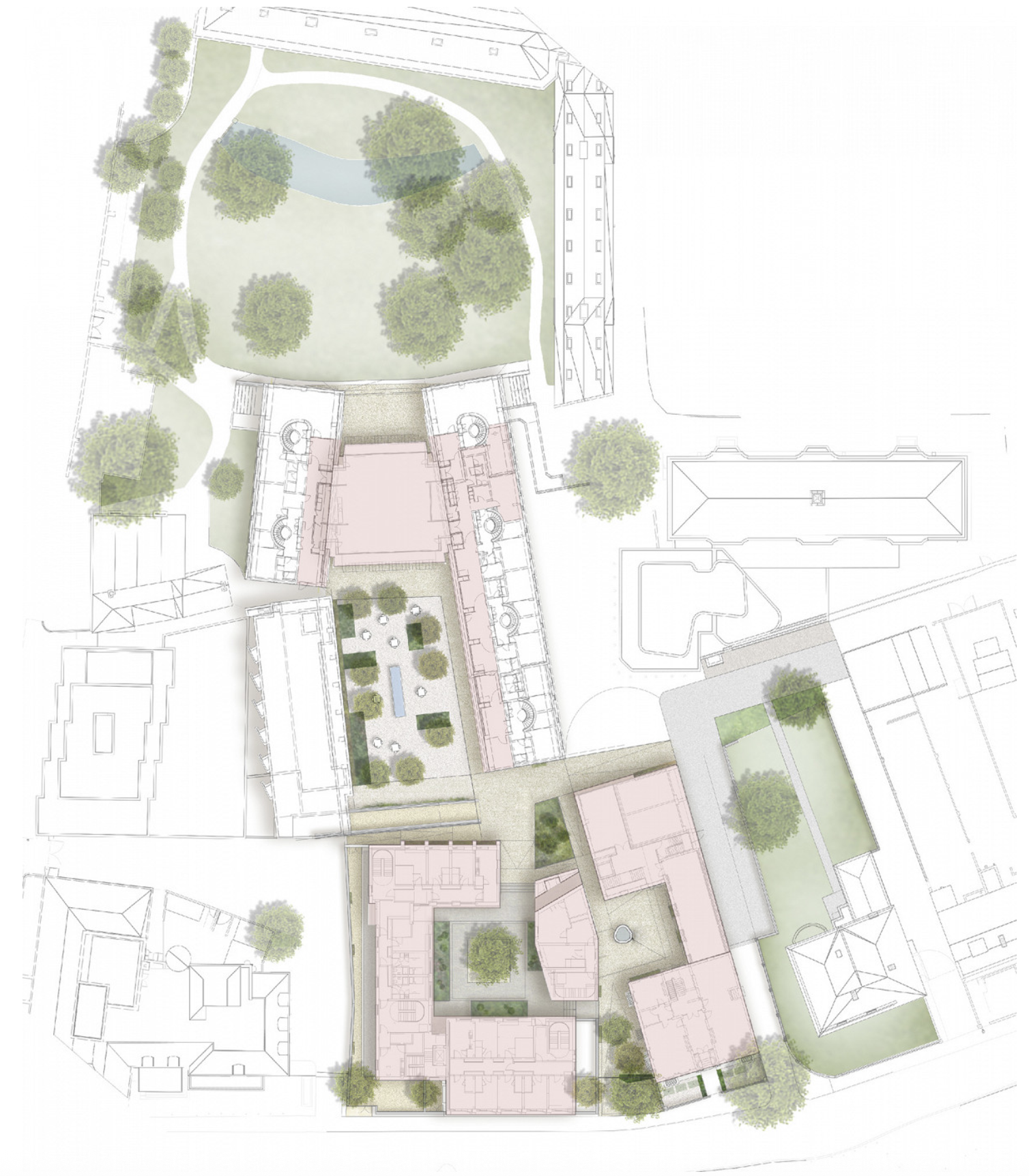 In the College’s most significant development for more than one hundred years, a series of formal and informal planted courts skilfully link new residential, social, communal and teaching accommodation.